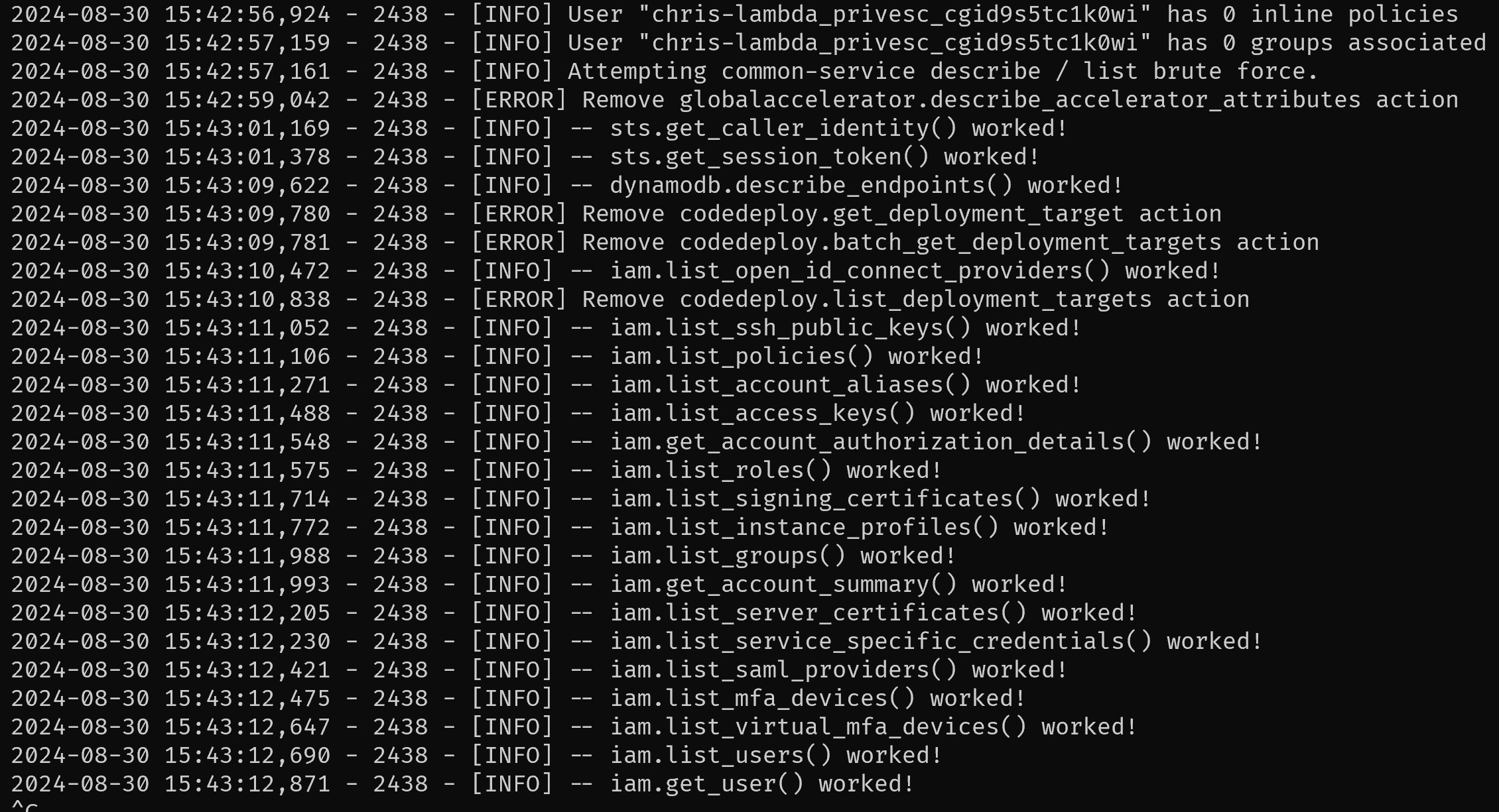 IAM 중 list와 get 동작, sts AssumeRole이 가능함을 확인했다.